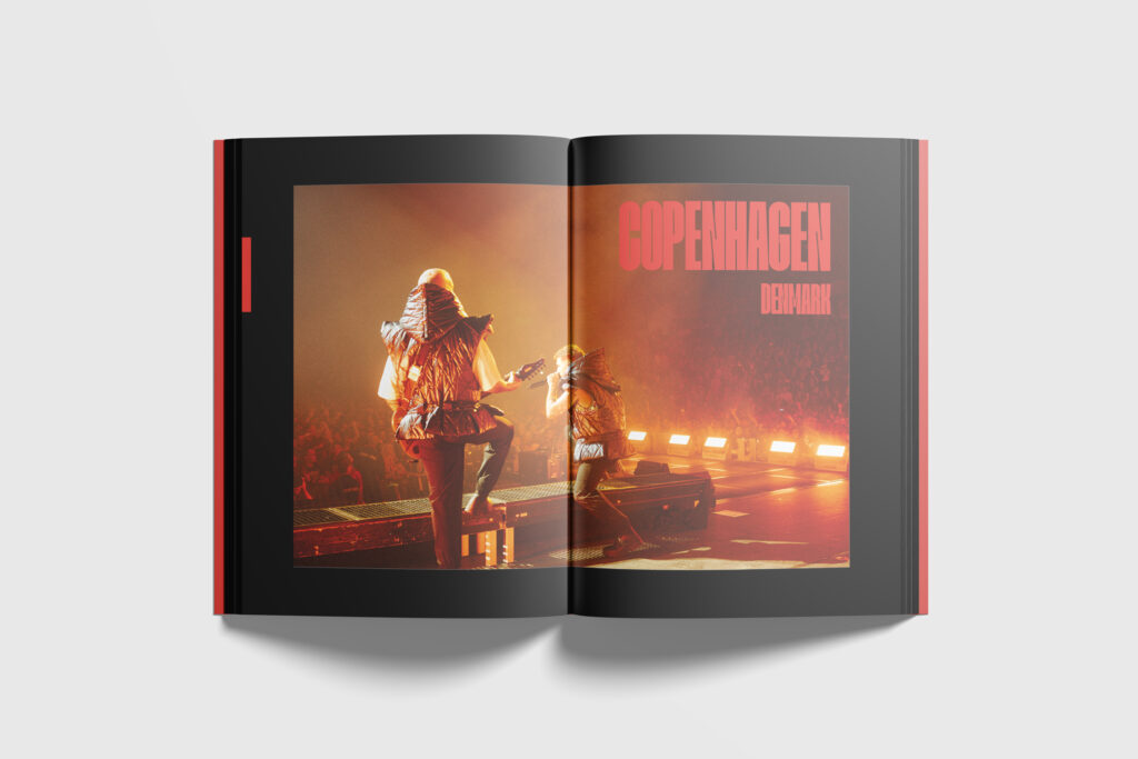 25 Konzerte. 160 Seiten. Null Text – pure Bildgewalt. Für Electric Callboy habe ich das komplette Inlay gestaltet: von der Musterseiten-Architektur über Bildcollagen bis zur druckfertigen Datei.